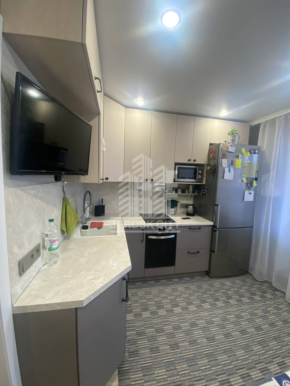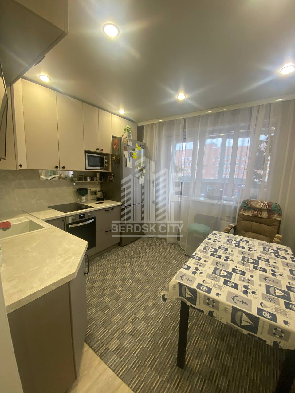 Остаётся вся мебель и бытовая техника: варочная панель, духовой шкаф.